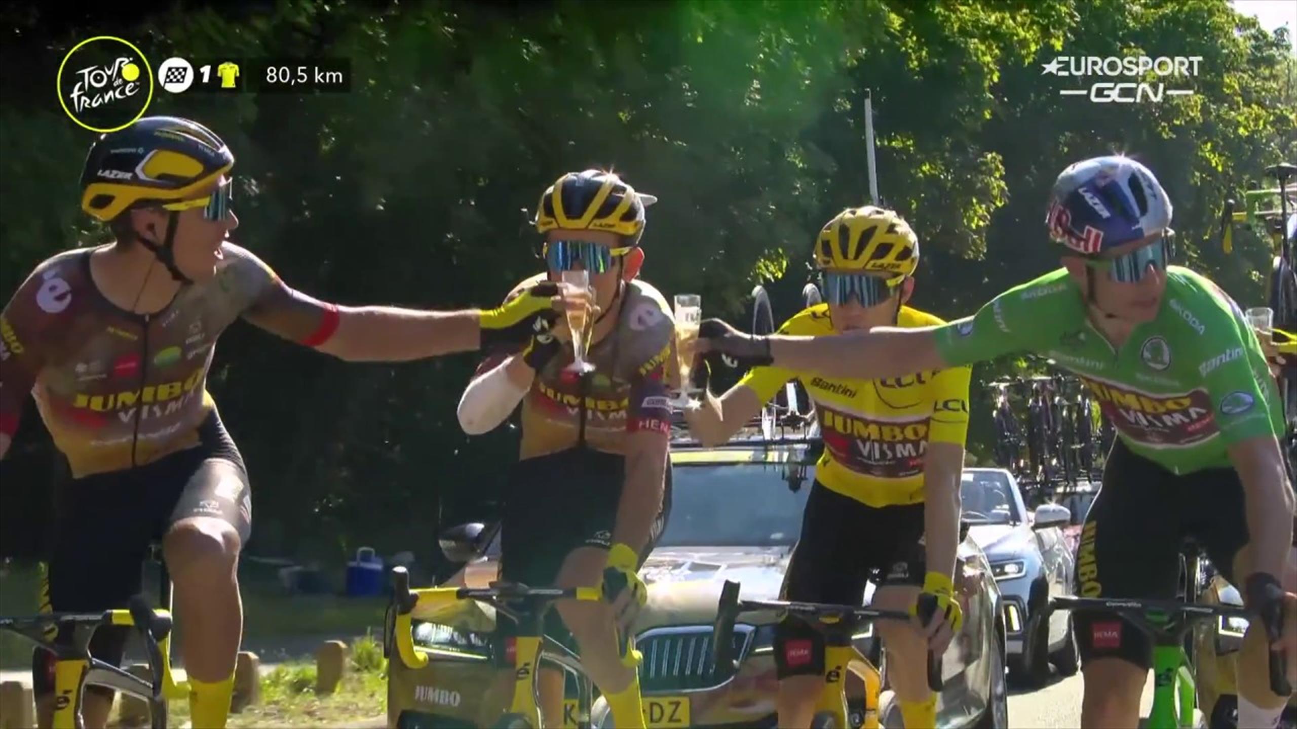 Tour de France JumboVisma viert feest met champagne Eurosport